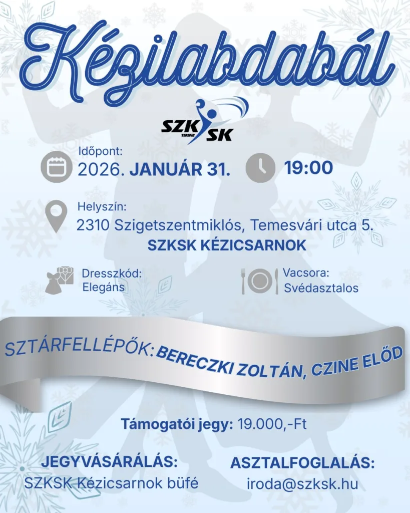 Az SZKSK Kézilabdabálról további részletek, asztalfoglalás az szksk.hu oldalon érhető el.