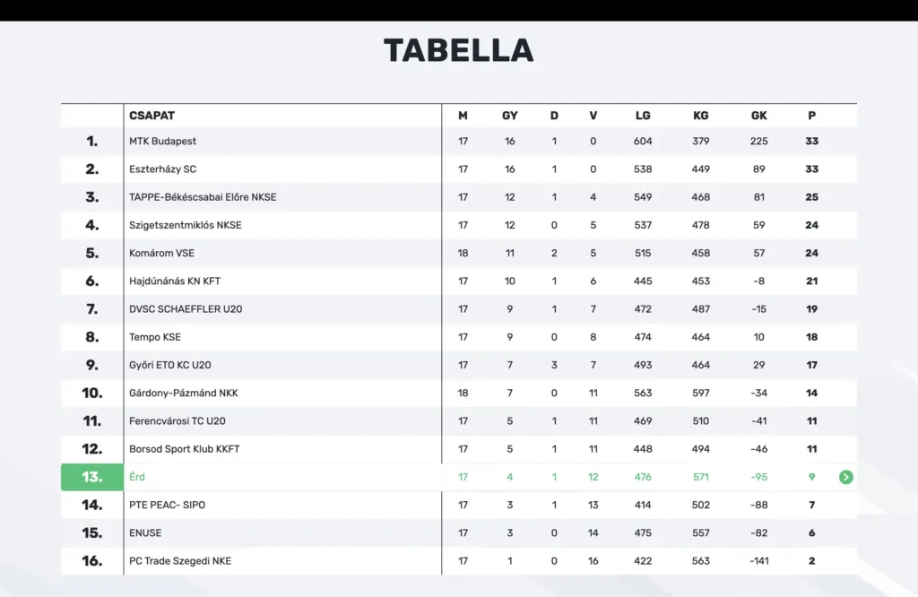 Az ÉRD a fordulót követően 13. helyről várja a folytatást a tabellán.
